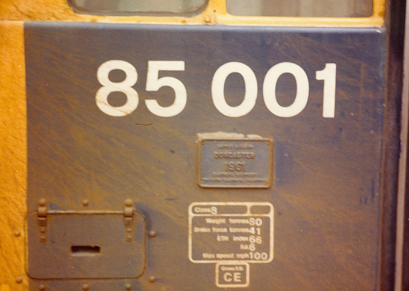 Still carrying her Doncaster builders plate, a close up of 85001 Sep 11th 1985
