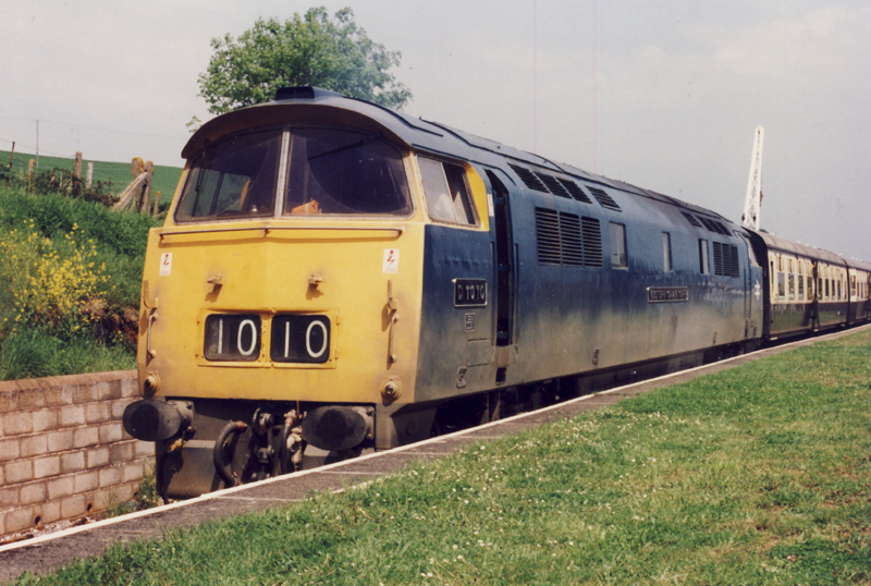 Looking the part with a weathered bodyside so typical of 1010’s BR days, here she stands waiting time at Watchet with the 1245 Bishops Lydeard – Minehead on May 18th 1997