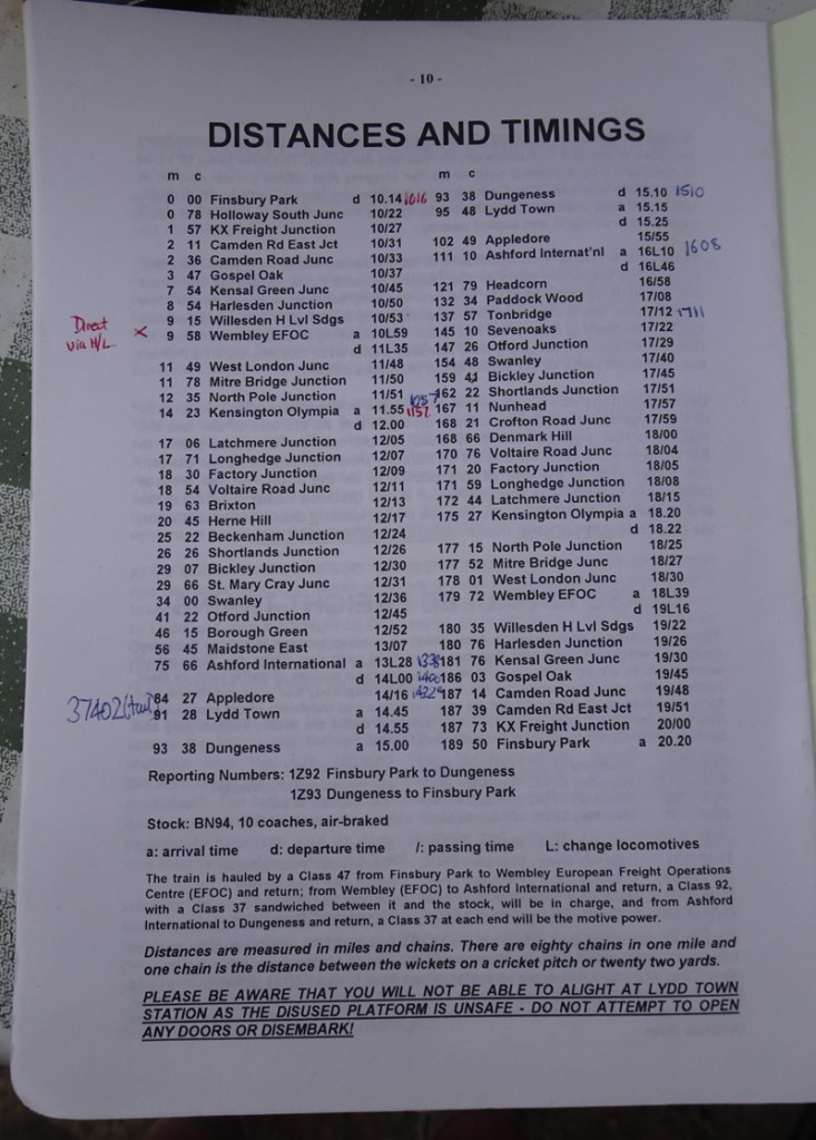 92038 1Z93 1510 Dungeness – Finsbury Pk rtn Railtour AS-KO