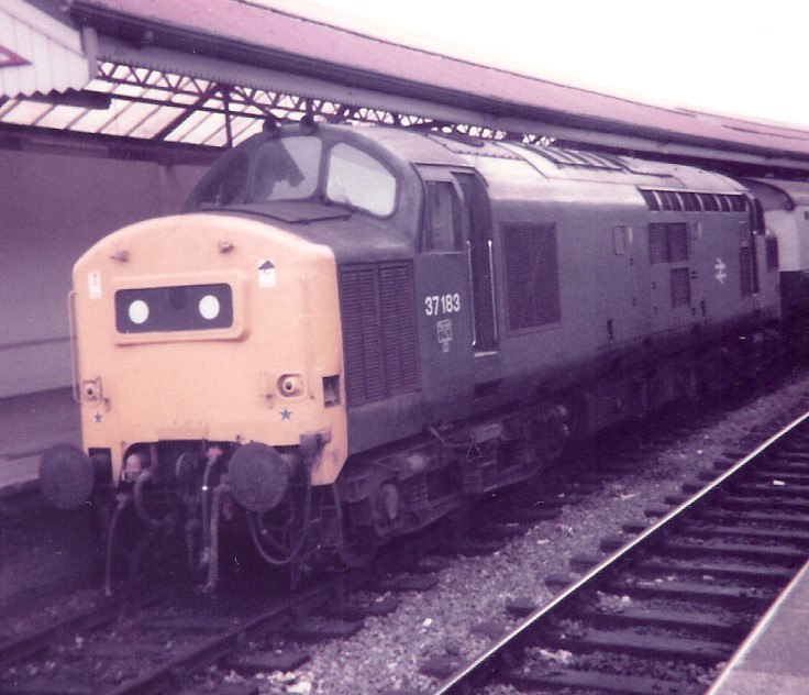 Thanks to Mike Lewis for this Swansea view of 37183 on September 16th 1981. Late rthat day Mike raked in 37183 on 1C21 1905 Milford Haven – Cardiff from Carmarthen to Swansea
