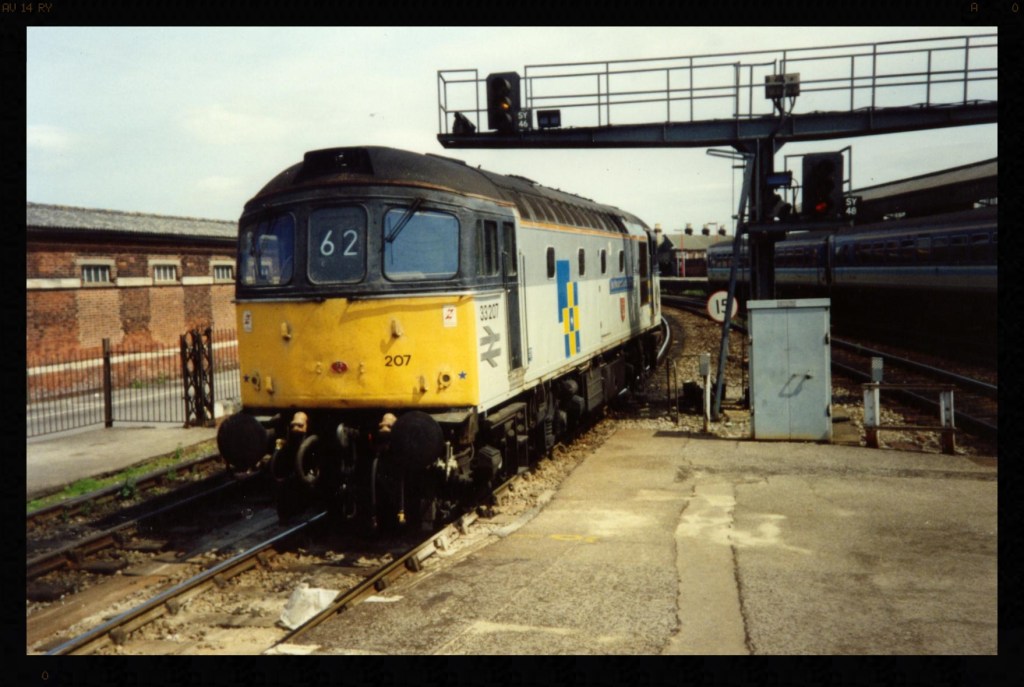 The man with the golden gloves has just uncoupled 33207 from the 1155 Exeter – Waterloo on August 9th 1991, for 47716 forward, fortunately “TC” was on board from Templecombe!