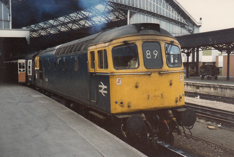 The “red pen” is ready, 33203 about to be scratched by “TC” on the 0800 Cardiff – Portsmouth H forward from Temple Meads on May 22nd 1987