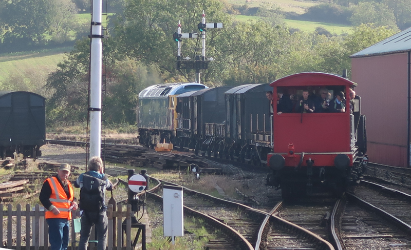 Very popular brake van rides on the 1113 Cheltenham – Toddington freight worked by 47105 accelerates away from Winchombe