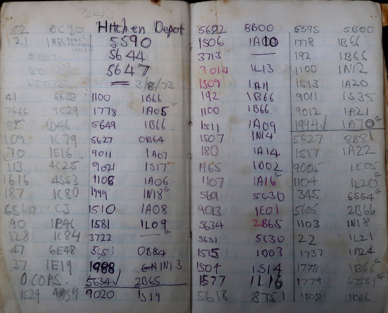 Hitchin was a bit of a trek from Dunstable involving 2 buses a good 90 minute trip. The Luton – Hitchin FLF bus dropped us off in Nightingale Road so the depot was always done first. Just the 3 locos on shed plus DMUs aplenty.