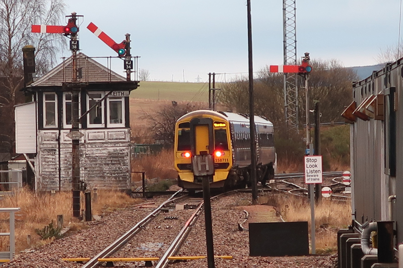 Keith’s long surviving semaphores look good as 158711 passes the box with the 0701 Inverness – Aberdeen on February 7th 2023