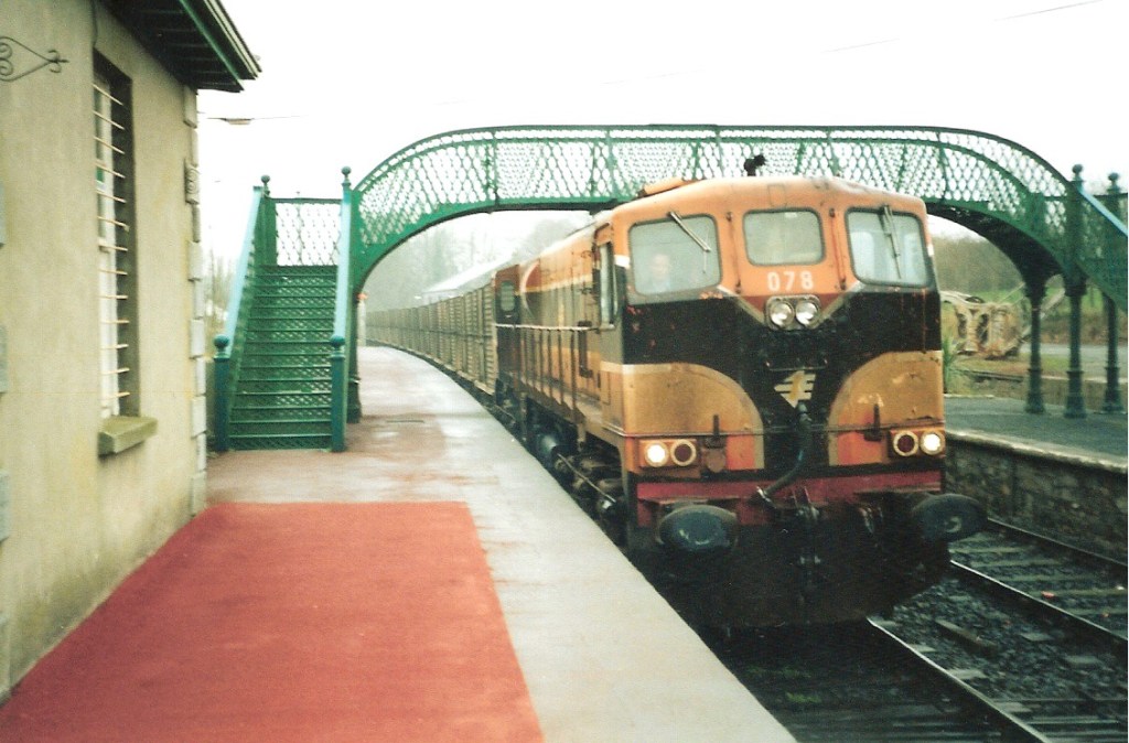 078 at Carrick-on-Suir with the 0800 Waterford – Mallow V558 beet train on December 12th 2002