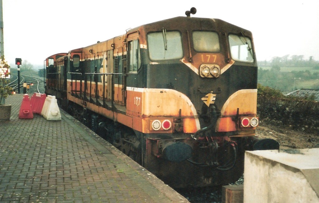 There was another scenario for our Cork driver on the diagram behind us as he had to wait for his engine to appear from the factory and the 1045 Cork to Heuston was delayed by 20 minutes in front of him through a door fault in keeping with the bad timekeeping experienced all week. This all meant that by the time he got to Tipperary he had to wait for us to clear the section. We took delight in sending him a message over the radio criticising him for swapping turns and I was well pleased when we reached Tipp to see his luck had further run out by having 076 light engine thereby making it 3 each for pairs. We had no impediment to thwart our progress at the Junction as we reversed into the station and a speedy run round had us pulling away in the rather basic cab of 177 that didn’t even have leather arm rests on the second man’s side.