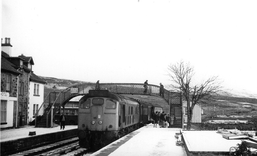 Thanks to Geoffrey Robinson for this classic Achnasheen view of class 24 5116 with a Kyle line service in November 69, what a phot!