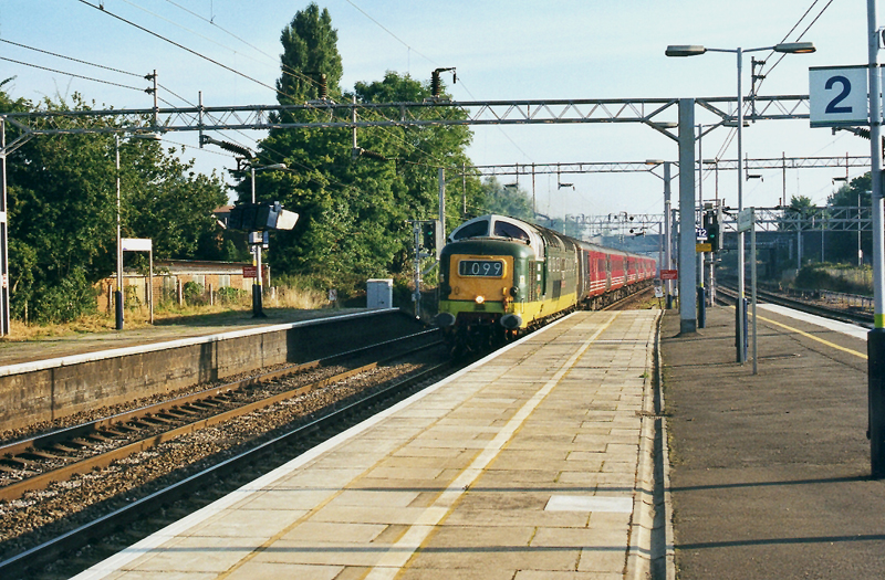 The production examples, apart perhaps on delivery runs when new, were as yet unknown locally in BR days. Preserved examples were occasional visitors, D9000/55022 had a regular Summer Saturday turn in 1998 and 1999 bringing Napier music weekly on 1O99 the 0658 Birmingham – Ramsgate Virgin service train.