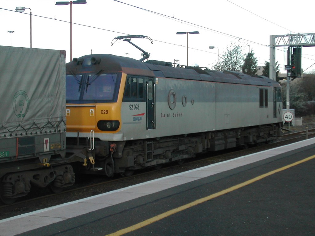 Roaring deeply, 92028 at Birmingham Int’l with an intermodal