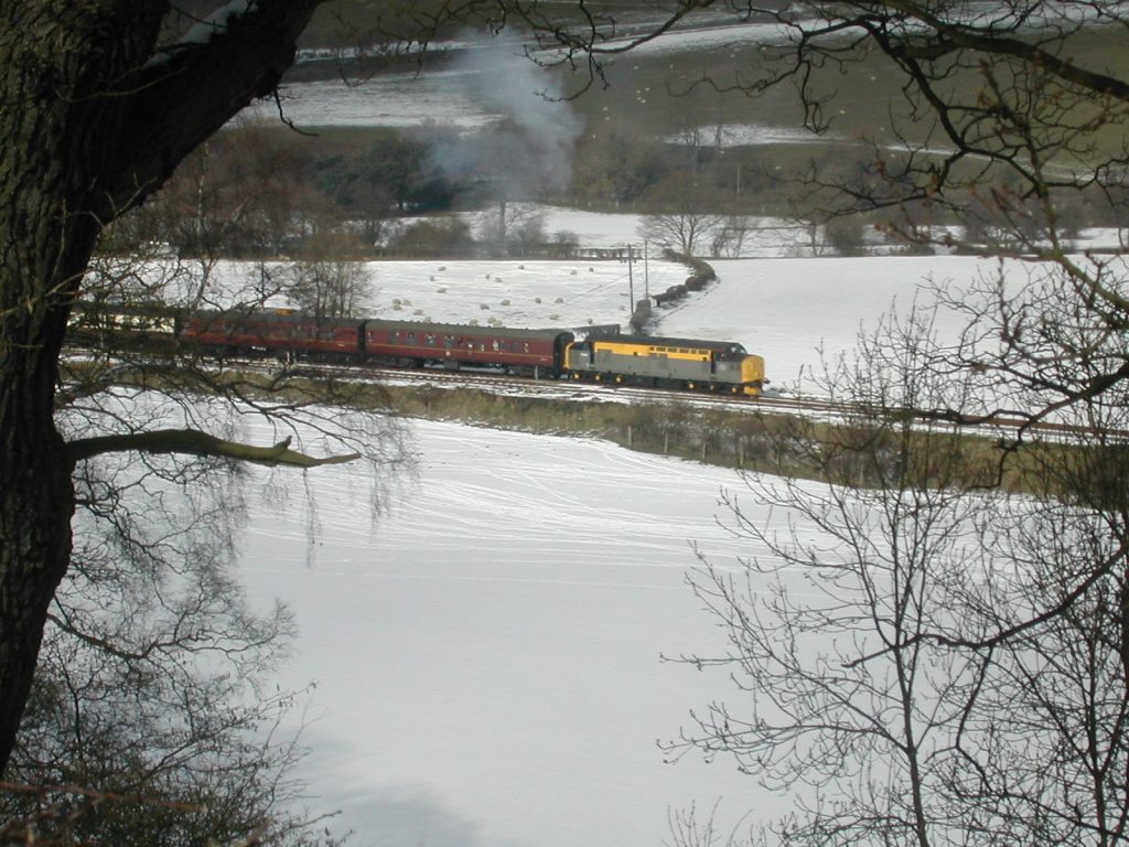 Much cheering at the Keynes with 87002 arriving on the first down Liverpool, with 87021 similary welcomed forward from Bir Int’l. 37674 and 37893 were noted at Bescot with plenty EH 47s on Crewe. Bailing off the 158s at Ruabon we were surprised at seeing patches of snow around, “looks thicker on the hills” piped up Ian as we waited for the bus to Llangollen.