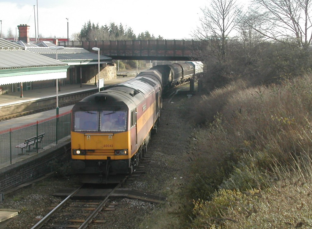 Sunday steel traffic on the move through Wrexham with 60042 heading North