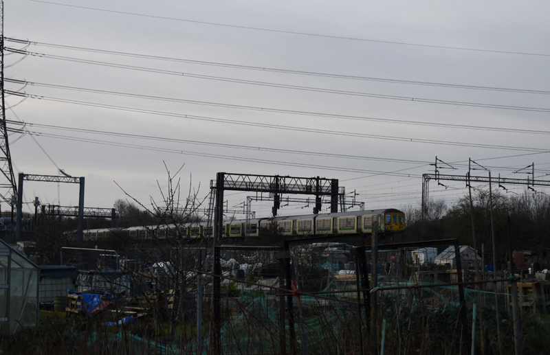 A sad sight at Linslade allotments as 37884 drags 319457/319433 from Northampton to Sims Metals Newport for scrap, taken on January 24th 2024. After a long period out of use in Camden CS 319433 and 319457 made the final powered 319 run locally working 3N19 Camden – Northampton on December 19th 2023……..