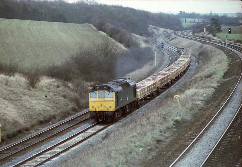 25266 at 1311 on 4F53 Forders – Garston “fletliner”. The “rat” is working hard, the train at 8 loaded “fletliners” probably the maximum for a single rat, 15 being the limit for a pair