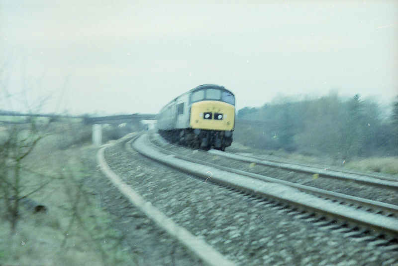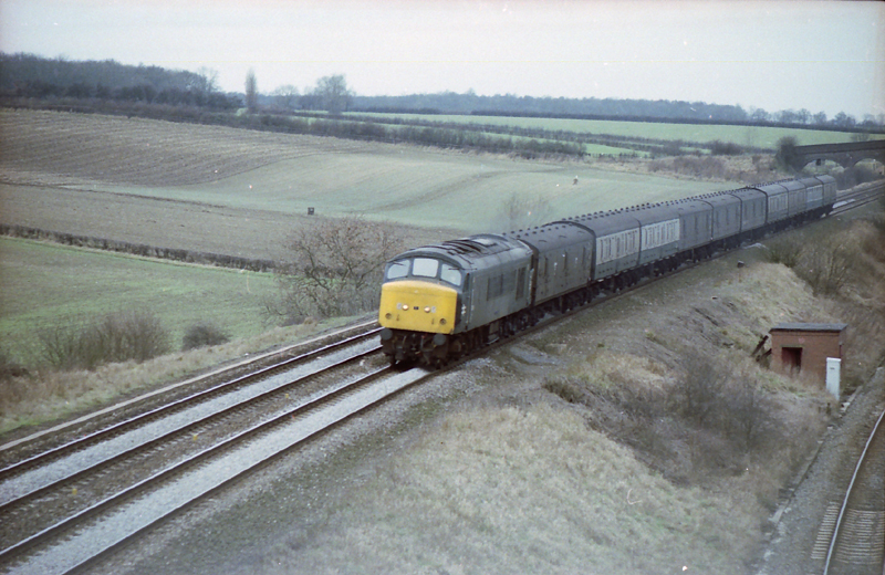 45013 at 1249 on 3C01 1013 Nottingham – St Pancras Vans. The rear 5 coaches are off the 0427 St Pancras – Leicester which had a TSO for passenger accommodation