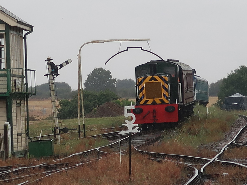 Stock varied from 2 cars (75250 part of 302277, 75033 part of 302201), to class 117 51381, Non corridor 43264, Teak bodied 4229 and E43178E, not forgetting the superb ex CP rail “van” or caboose CP 464377. 03399 with the caboose late afternoon did the branch to the Museum entrance, then a spin down the main line to Old Heath, great fun