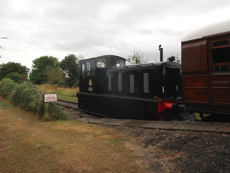 Retrofitted with cow catchers like her Wisbeach tramway days, 2203 once of Hemlite, Harpenden enters Mangapps