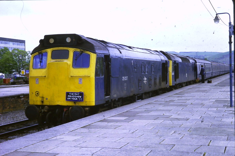 25037 and 25315 at Aberysytwyth on May 26th 1984 with the 0744 from Shrewsbury. The “rats” will run round the stock here to form 1A46 1010 Aberystwyth – Euston. A Dave Spencer phot recvd with thanks