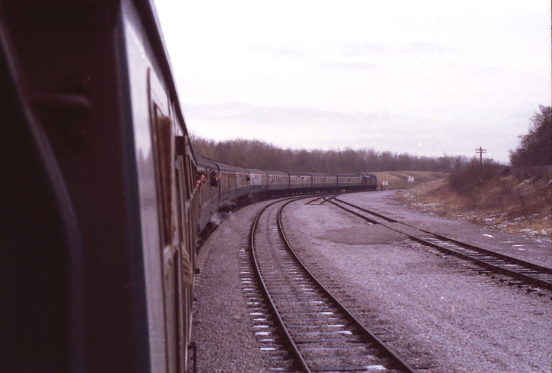 David Shepherd’s preserved line and depot provided the entertainment for a few hours. We returned from Cranmore completing the Merehead triangle via the South road and back to Westbury for 45121 to rejoin us. A storm via Salisbury Plain and the “mule”. As darkness fell 45121 ‘s complete lack of “marklites” up front saw concerned rumours of a Salisbury loco swap. The 45 continued however a howling, singing invisible Sulzer monster through the South west and London suburbs before returning to Pancras to end a highly enjoyable tour that had something for everyone