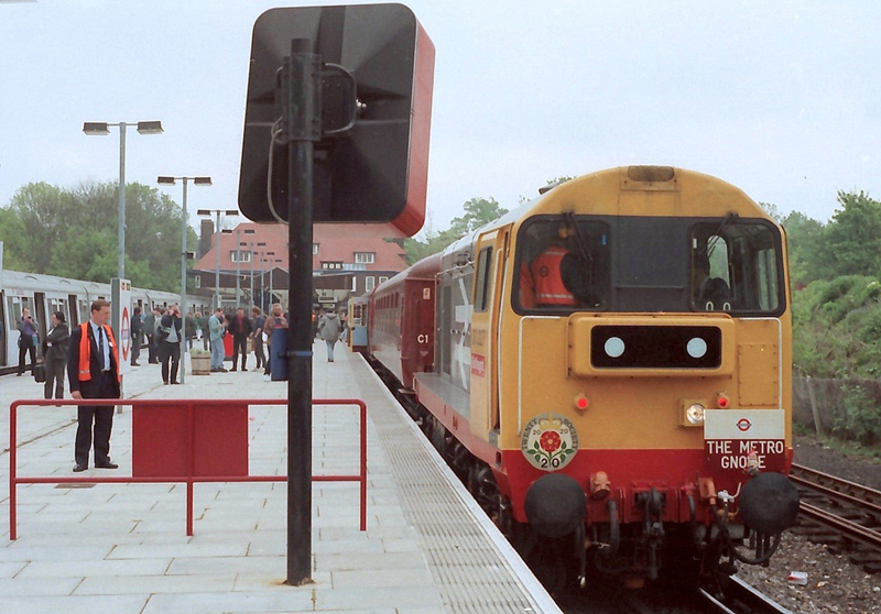 A 1 minute turnround at Chesham then Sarah showed off her hp in a steady climb back up to Chalfont and downhill to Harrow. A reversal at Harrow, then a rainy lunch stop at Amersham before various jaunts to Watford and Harrow. This station was visited by the tour six times! The last new destination was Uxbridge where Sarah at the stops and 20227 thrashing on departure were perhaps the highlights of a truly outrageous day out. 5 hours of non stop action with 45 powered miles behind each loco, and all on track unfamiliar to both us and 20227. The Metropolitan line proved to be a bit more than just another tube line and it was especially nice to have a class 20 on a mainline again….