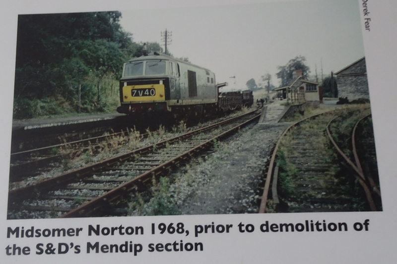 Midsomer Norton and the S n D closed on March 7th 1966. Here on one of the excellent station info boards is a Hymek on a demolition train, North British 63 ers also worked these demolition trains