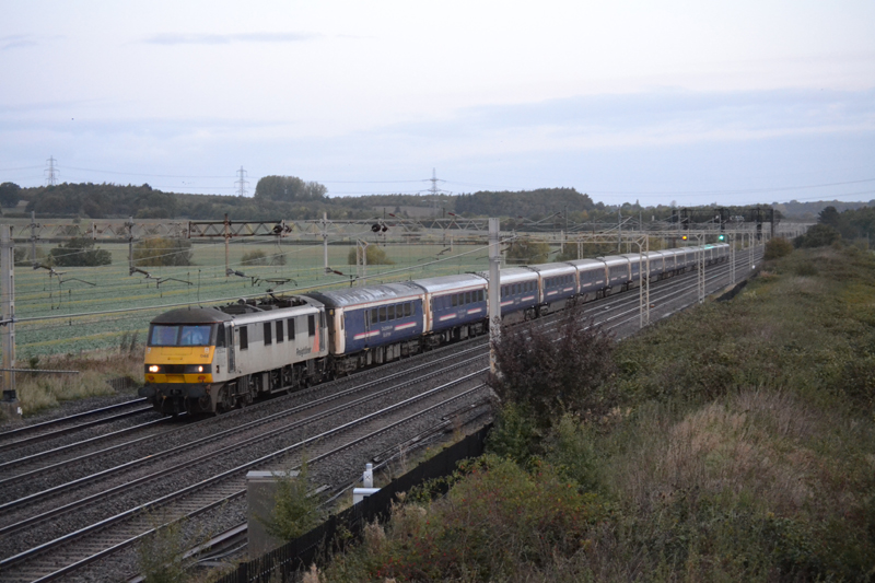 A sad morning scene, 90044 brings the end of Mk III sleeper operation on the WCML working 1M16 Inverness/Fort William/Aberdeen – Euston “Caledonian Sleeper” on October 10th 2019. Bringing up the rear of the train were sleepers 10504 and 10598