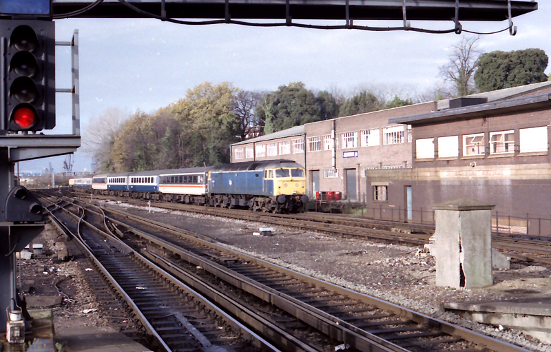 47587 arrives at Southampton with the 0740 Poole – Glasgow, Nov 22 1986