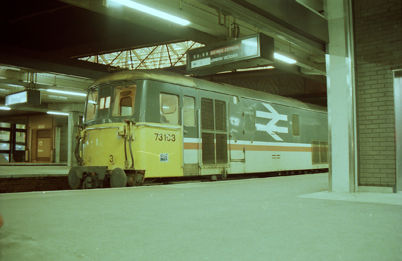 73103 at Gatwick with the 2235 to Victoria, a Tony Ewer photo late on Nov 22nd 1986
