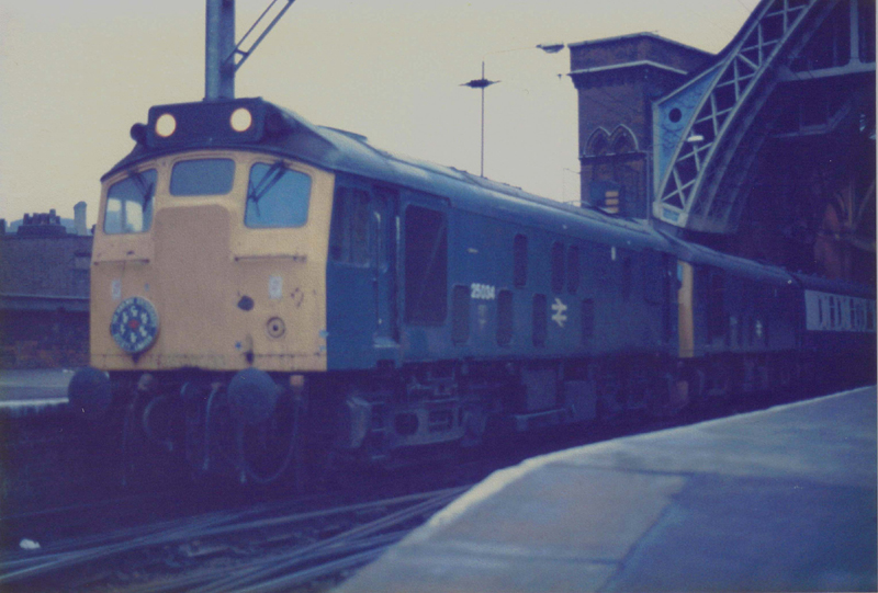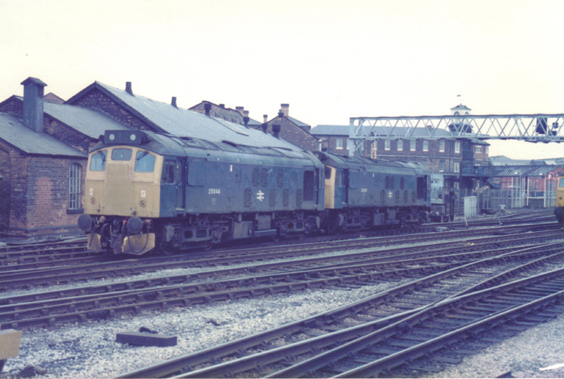 In slightly less dull weather 25034 and 25044 are seen at Stafford