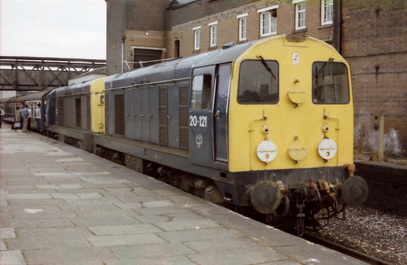 20121 and 20157 at Nottingham with 1E89 0816 Leicester-Skegness on 170885