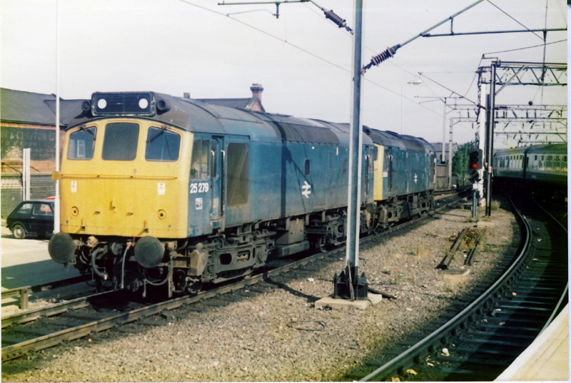 The rateable pairing of 25279 and 25325 at Wolves prior to working the 0735 Euston – Aber forward on July 28th 1984