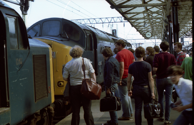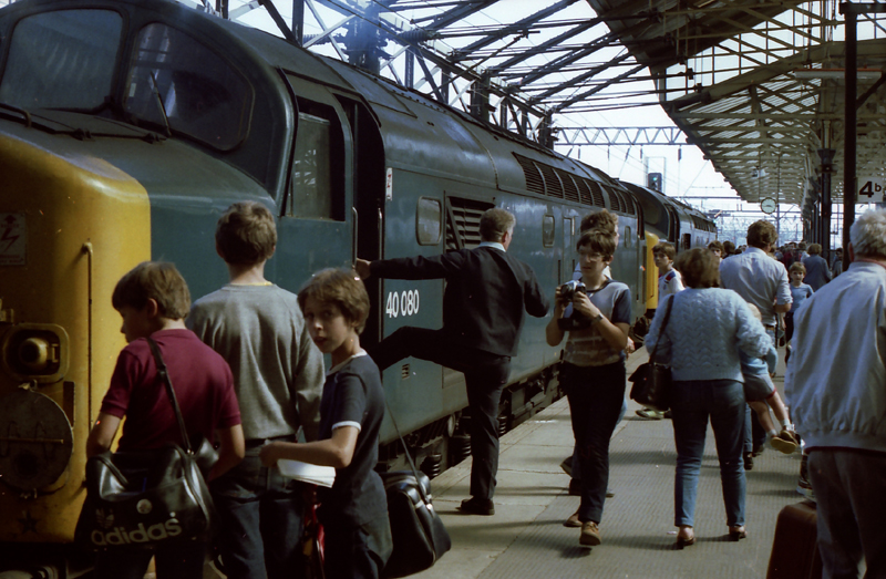 The train was rammed, front coach was a MK2 BSO with heads out of every window. I actually managed to share a window on the correct side in the guards compartment of the BSO. I think the gripper was probably hiding way back in the train! My personal memory is that 40196 wasnt very well, later confirmed by photos of the train as she had oil running down her side by the rad on our side. As the pair opened up everyone in the front coach started to be splattered by oil. One way to keep heads in! Like being behind a bloody Deltic! Bit of a party atmosphere on the platform at Crewe as they took the pair off and replaced them with a can. Only a short journey for me but one that will live in my head forever.