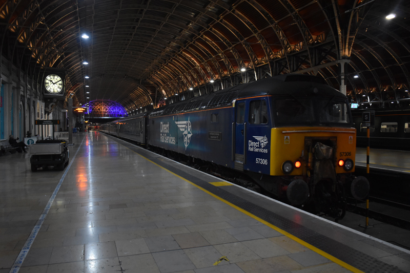 DRS hire in 57306 at the blocks at Paddington with the emcars of the down midnight on August 1st 2022