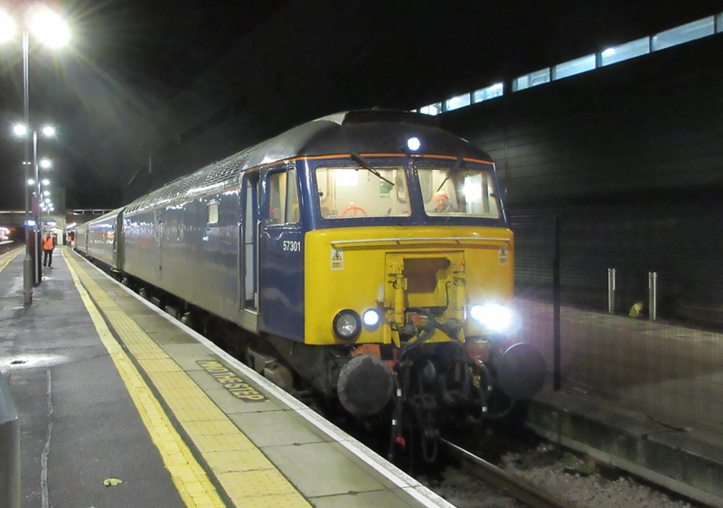 57301 with the sleeper emcars Reading, then Paddington bound at Exeter SD on December 9th 2025