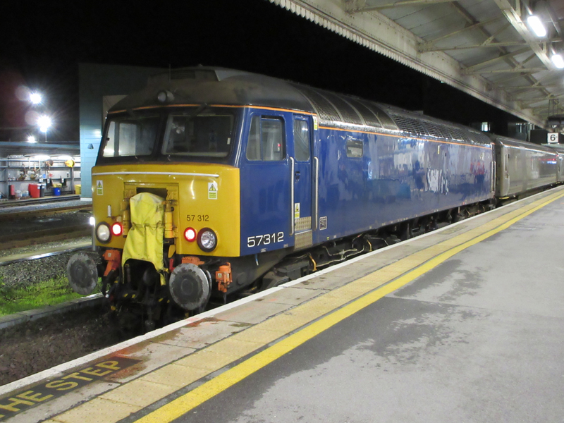 The previous night’s “Up Midnight” had run into issues resulting in a plastic substitution en route! Heres 57312 at the tail of the battered sleeper emcars en route to Reading on December 9th 2025