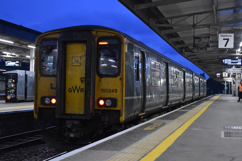 150249 eases out of Plymouth with a Gunnislake service, October 18th 2025