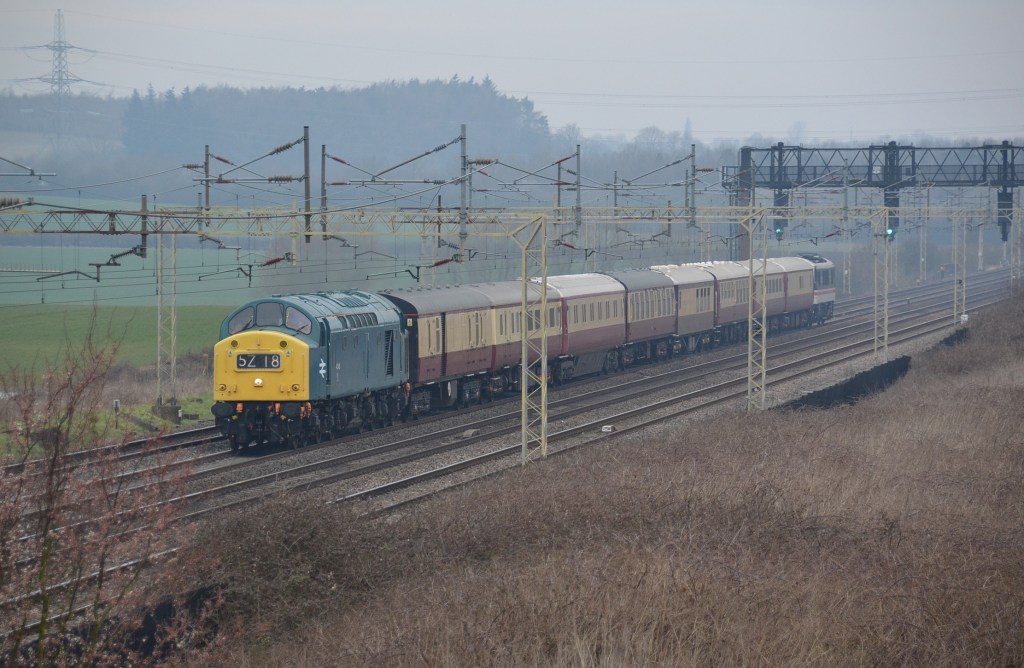 87002 looking good howling North with an LSL Euston – Inverness tour just South of Leighton on February 26th 2022