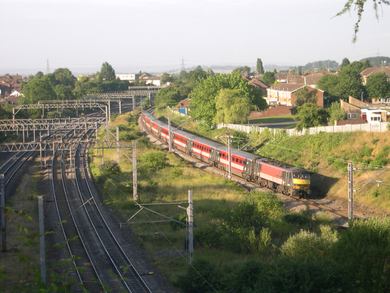 Thanks to Mark Beal for this image of 90029 at Milton Keynes with a Charter for Ednburgh on August 11th 2001
