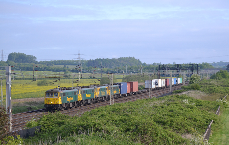 4L89 Coatbridge – Felixstowe “Up Scotch” liners during the first lockdown was often routed on the up fast and 30 early, 86639, 86632, 86627 and 86605 the up front power at Ledburn on May 5th 2020