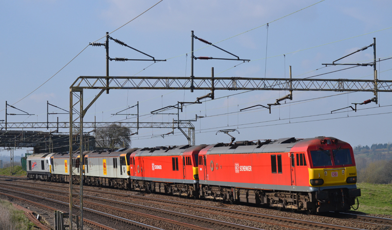 0A06 Crewe – Wembley often produces a small convoy but on April 7th 2015 Old Linslade saw 92042 dragging 92031, 92024, 92002 and 67026 South, 92002 and 92024 being destined for export