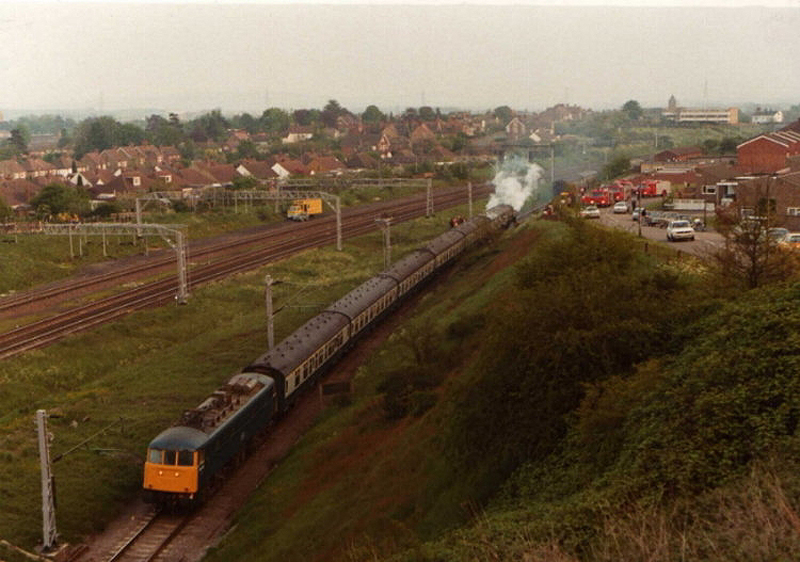 A wow image from Steve Chapman of 85008 on the down Slow approaching Watford Jn on May 12th 1985