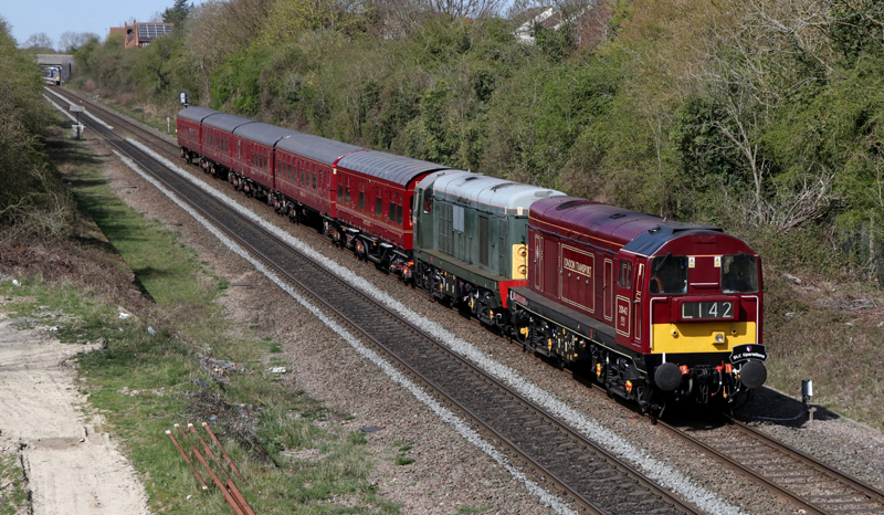 Trev Rolfe commentated that “he’d never seen a train pass through Amersham so fast, normals diving for cover, papers flying everywhere” as 25042 and 25083 stormed South with the Capital City Transfer tour on April 14th 1984