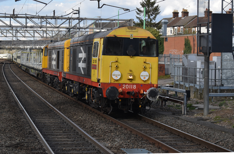 Always rare through Leighton both in BR and on today’s railway but heres 20132 and 20118 approaching Leighton Buzzard with a Chaddeston – Wembley translator move on April 12th 2021