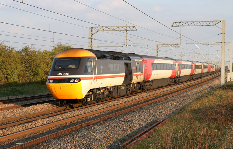 43102 The Journey Shrinker 148.5 MPH The Worlds Fastest Diesel Train passes Oakley on 19 April 2021 on the rear of the 1B69 1745 Nottingham – St Pancras International. Thanks to Mark Beal for the photo