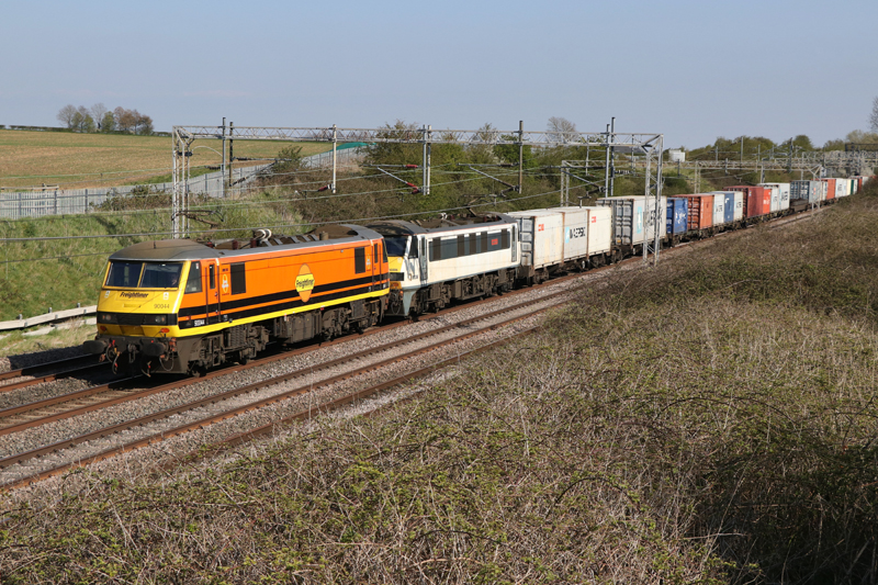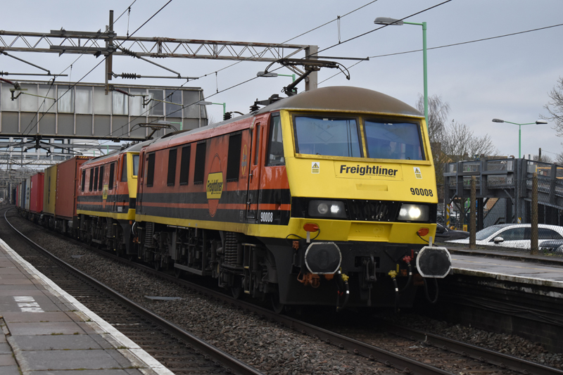 90008 on 90005 pass Leighton with 4L91 Trafford Pk – Felixstowe on January 19th 2022