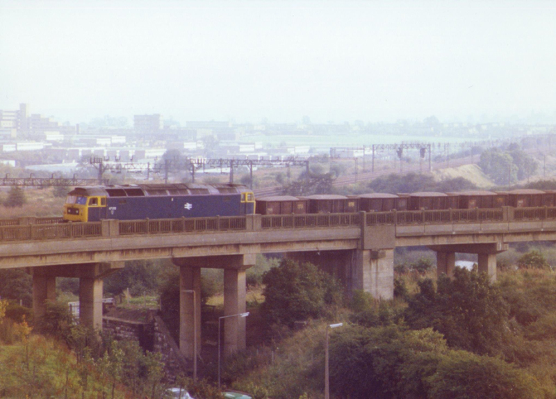 A nice classic view of Bletchley flyover with the lifted bridge section of the old flat jn line also in camera as 47212 crosses with a down stone train from the Western in September 1978. Thanks to Ian Windmill for the photo. This photo is also featured in our new freight trains remembered archive