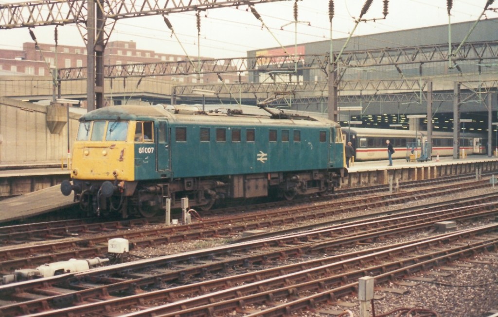 Classic WCML workhorse 81007 roars off the blocks at Euston on February 10th 1989, this fine machine (my favourite fish) was withdrawn 8 months later to roar no more.