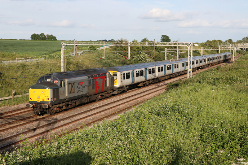 37884 drags presumably failed 319215 and 319012 through Hanslope with 5N37 1743 Watford Jn – Northampton on June 22 2021. A Mark Beal phot