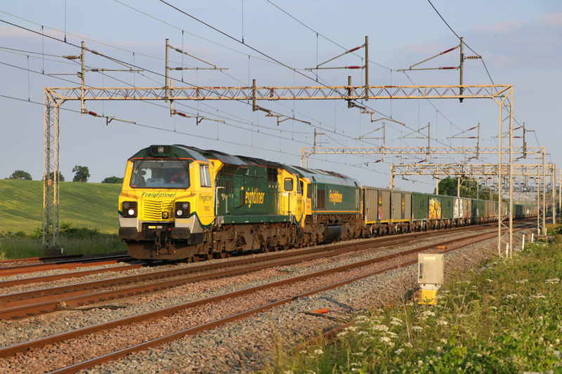 Switched to the fast line at Ledburn 66783 with 73212 and 73213 top and tailing 2 “Plastic pig” units through Leighton on May 28th 2021