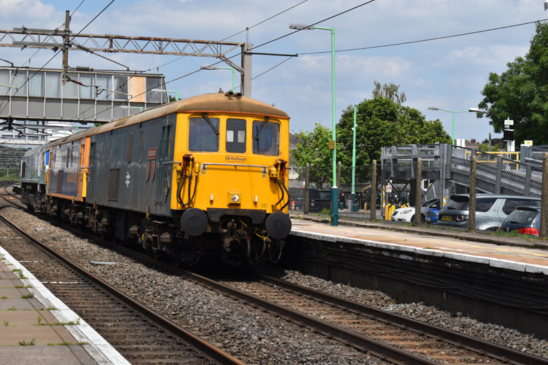 73’s under power through Leighton are a rare sound, here 73201 thumps through Leighton with 73141 and 66711 in tow on a Wolverton – Eastleigh light turn on June 23rd 2021